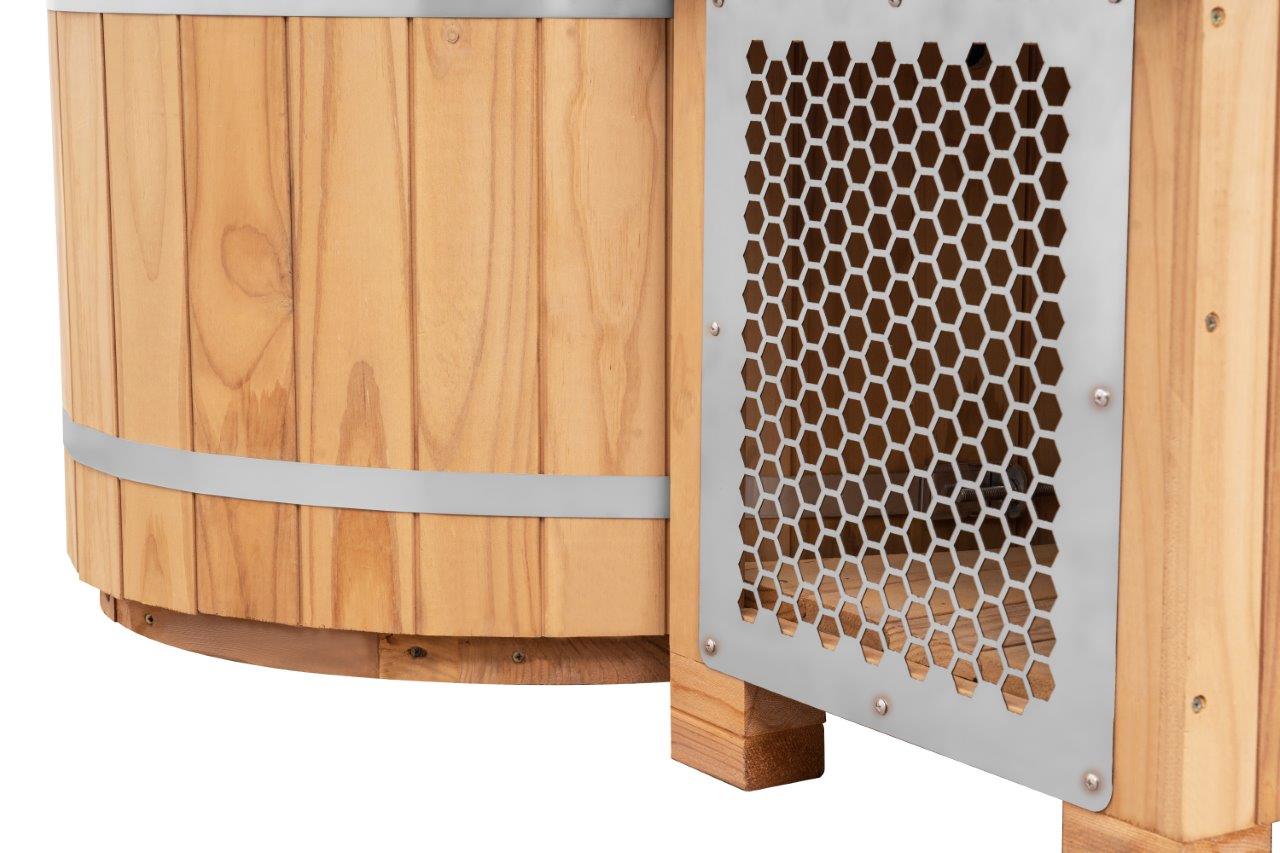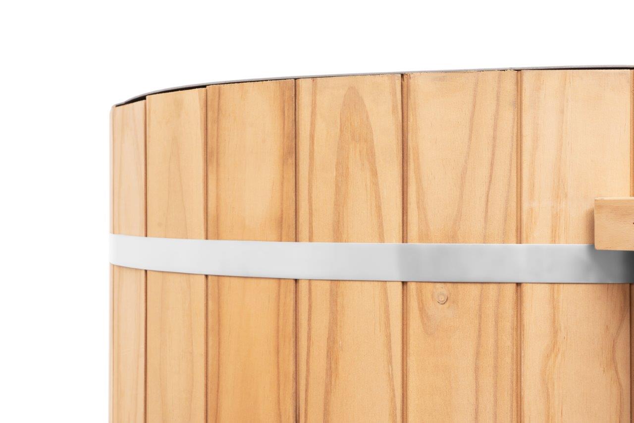 - There is a plastic liner fully fitted to the inside of the tub, with New Zealand Pine Thermowood covering the entire exterior of the tub.
